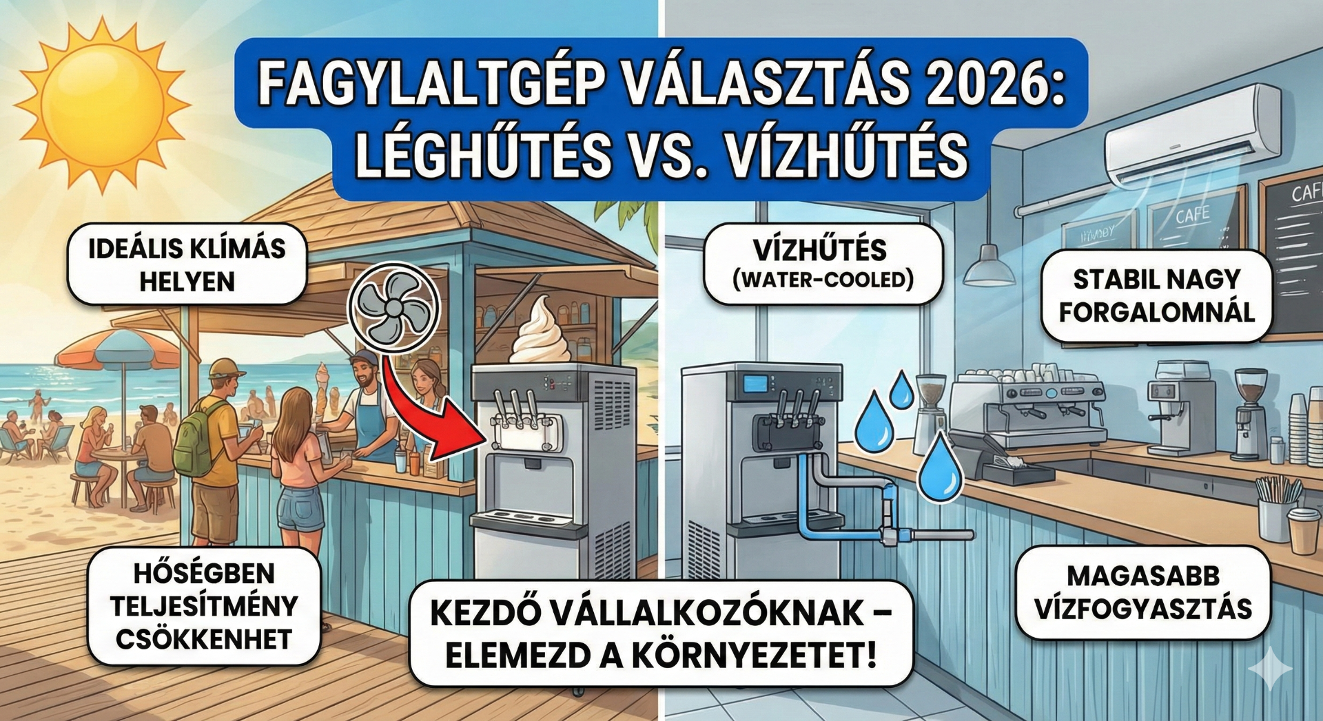 Léghűtés vagy vízhűtés? Melyik fagylaltgépek biztonságosabbak kezdő vállalkozónak 2026-ban?