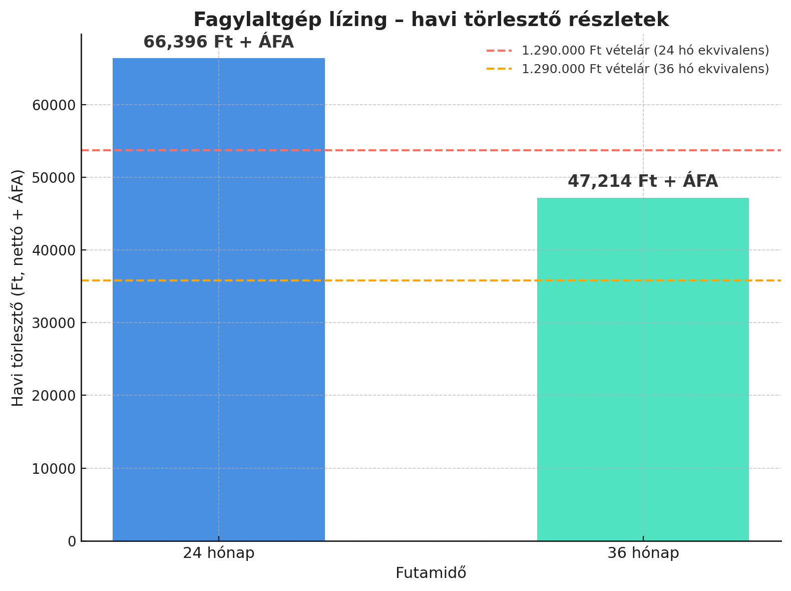 Egy 1.290.000 Ft+Áfa értékű fagylaltgép havi törlesztőrészletei: